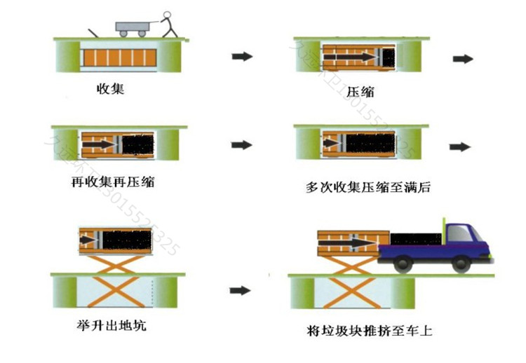 地埋式垃圾中轉站主要特點:1.平穩可靠:兩側舉升,剪叉跨度大,升降平穩,無傾斜。2.全封閉水平壓縮:垃圾壓實密度≧0.86t/m,大幅度節約轉運成本。3.淺地坑:地坑深度僅為1.55m,保潔及維修極為方便。4.高效率:壓實每噸垃圾時間≤10min。