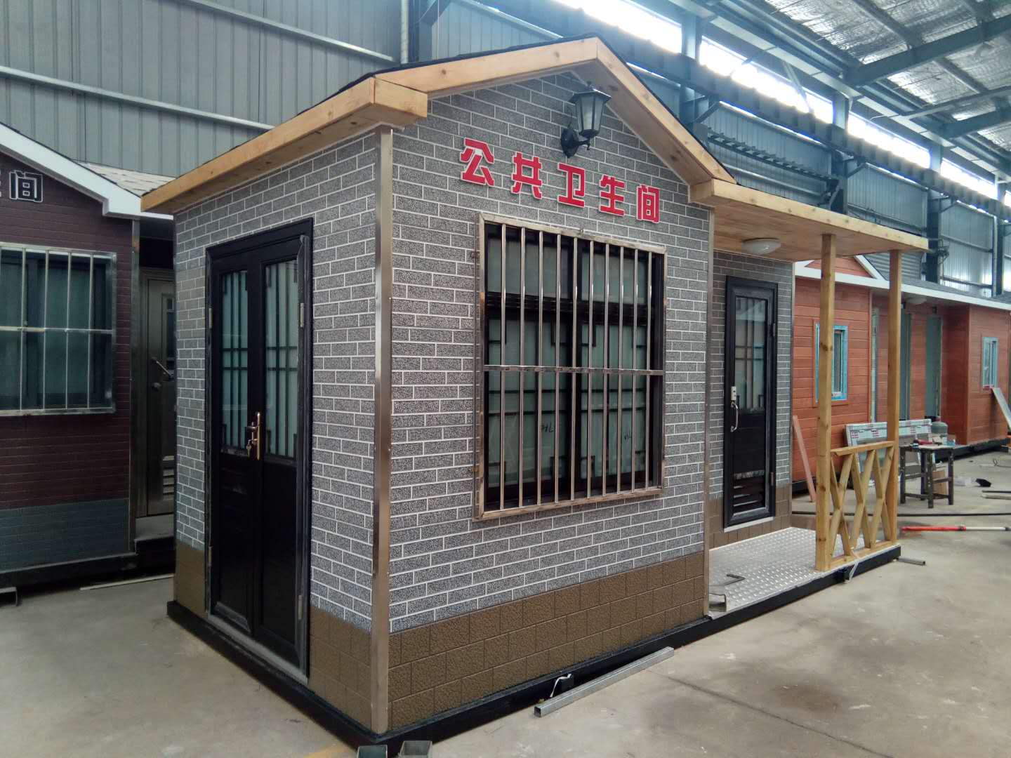 1、房體結(jié)構(gòu): 采用輕鋼龍骨結(jié)構(gòu),鋼材全部使用國(guó)家標(biāo)準(zhǔn)鍍鋅鋼材。根據(jù)房體的大小特選用國(guó)標(biāo)方管(50-100)焊接而成。鍍鋅管厚度為2.8mm,方管經(jīng)過除銹后進(jìn)行鍍鋅、防腐處理。這樣就會(huì)延長(zhǎng)廁所使用壽命。