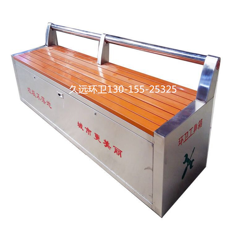環(huán)衛(wèi)工具箱:也叫保潔員工具箱,環(huán)衛(wèi)工具椅,保潔員休息座椅,市政保潔箱等。工具箱常用尺寸為:長(zhǎng)2400*寬500*高550mm,也可以做成2米,2.4米,2.7米等,寬度和高度也可以定做,滿足不同客戶、不同場(chǎng)所的使用要求。